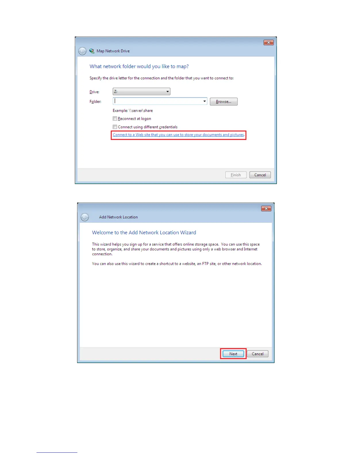 2. Fare clic su Connessione a un sito Web per l'archiviazione di documenti e immagini.