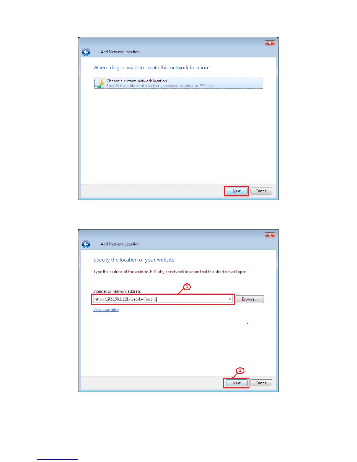 5. Inserire l'URL di uShare™ Mini NAS Adapter con il nome della cartella condivisa e fare clic su Avanti.