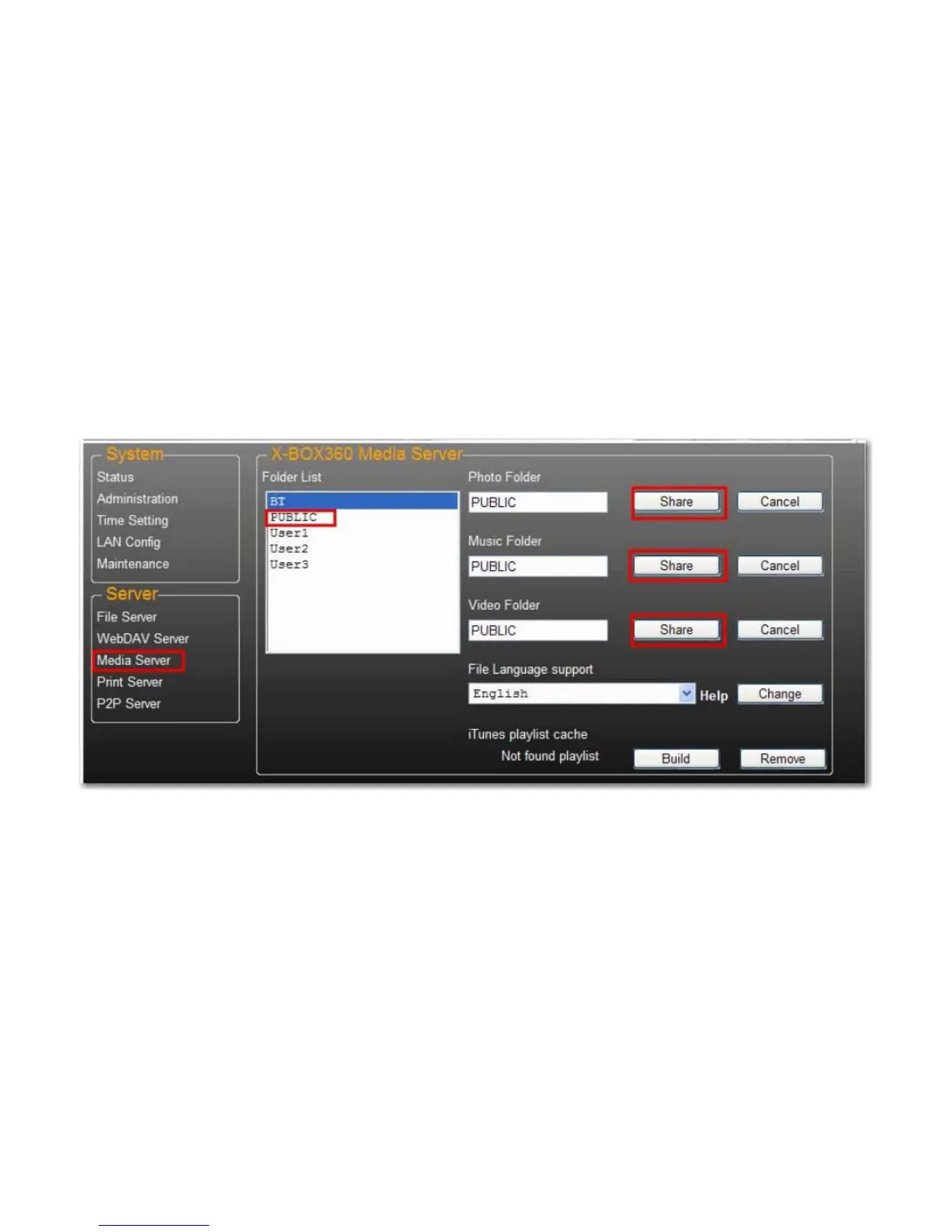 1. Accedere alla pagina Media Server (Server multimediale), selezionare la cartella con i contenuti desiderati e fare clic