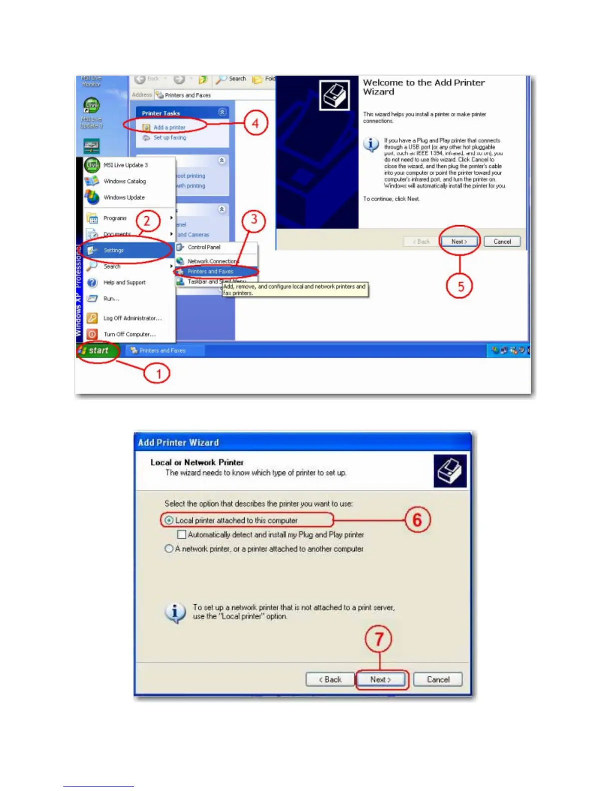 3. Una volta installati i driver della stampante, fare clic su Start > Impostazioni > Stampanti e fax > Aggiungi
