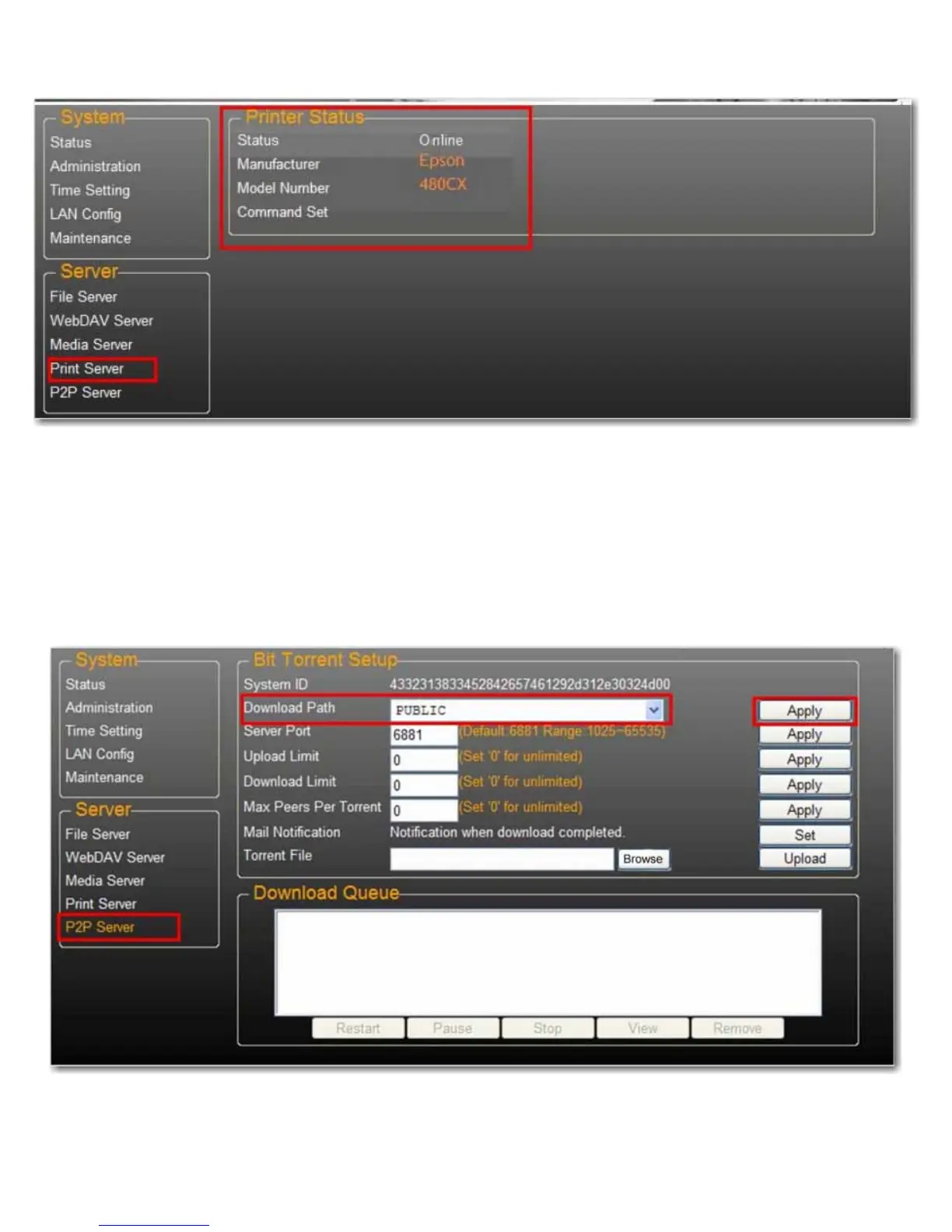 1. Select P2P Server. Select the Download Path you wish to use. Click Apply to save your settings.