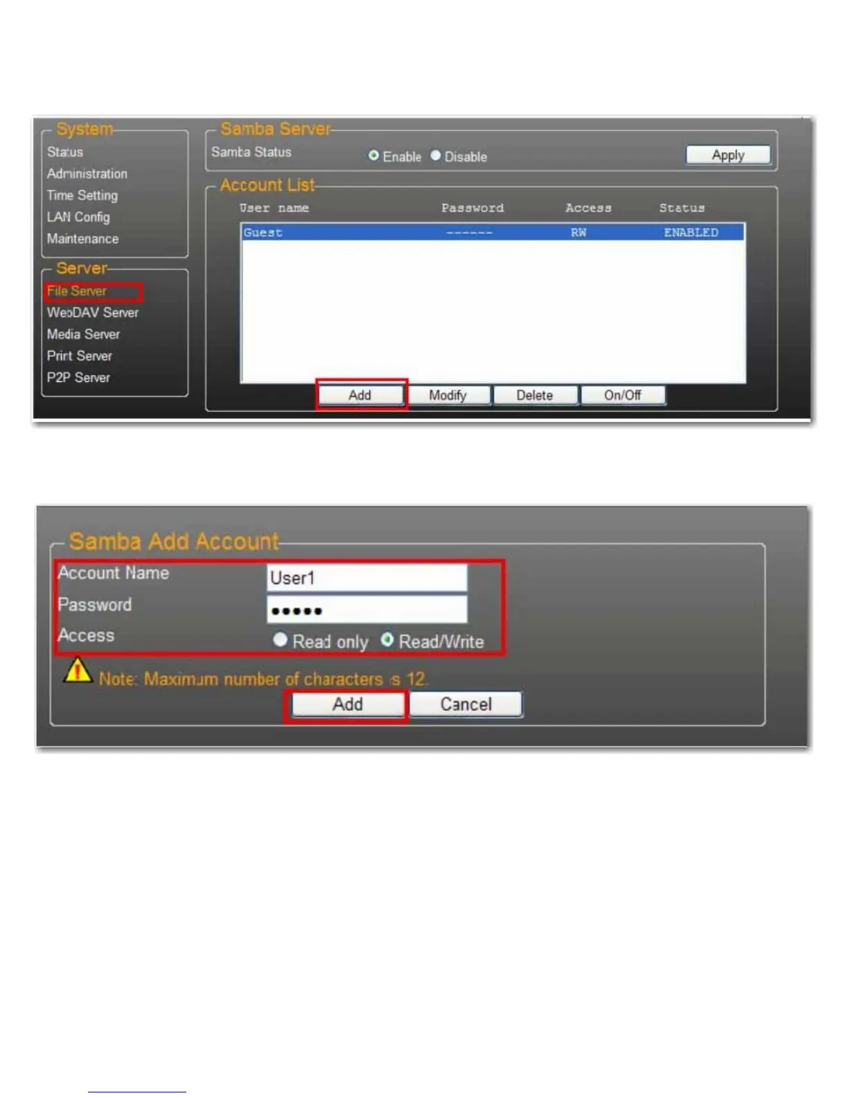 Erstellen zusätzlicher Benutzerkonten für den uShare™ Mini NAS Adapter