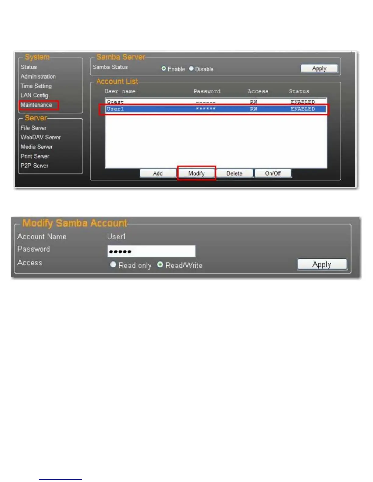 1. Wählen Sie den Kontonamen und klicken Sie auf Modify (Ändern).