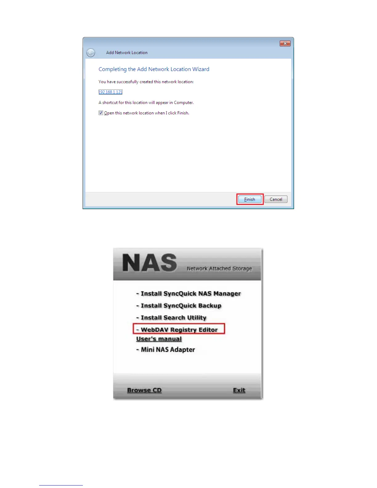 auf die WebDAV-fähigen freigegebenen Ordner. Die Vorgehensweise zur Anschlussweiterleitung finden Sie in der