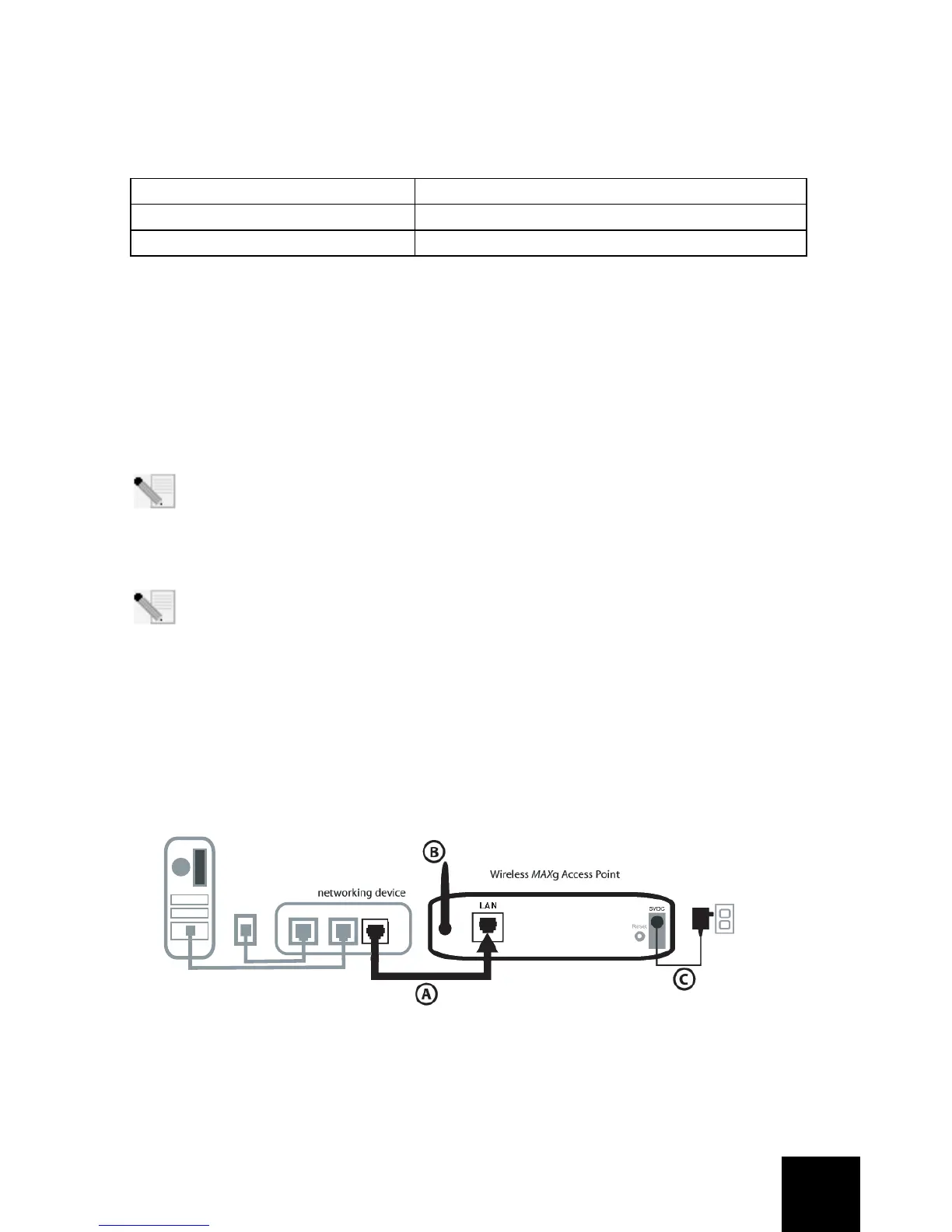 A. Conecte el puerto LAN del Wireless MAXg Access Point y el del dispositivo de red (un router,
