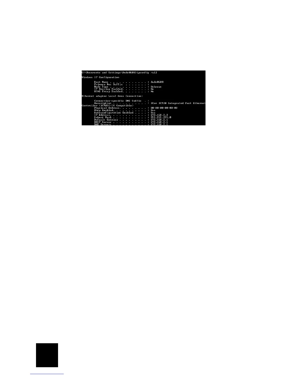 Uitvoeren. Typ cmd en klik op OK. Typ ipconfig /all bij de DOS-aanwijzing. Controleer
