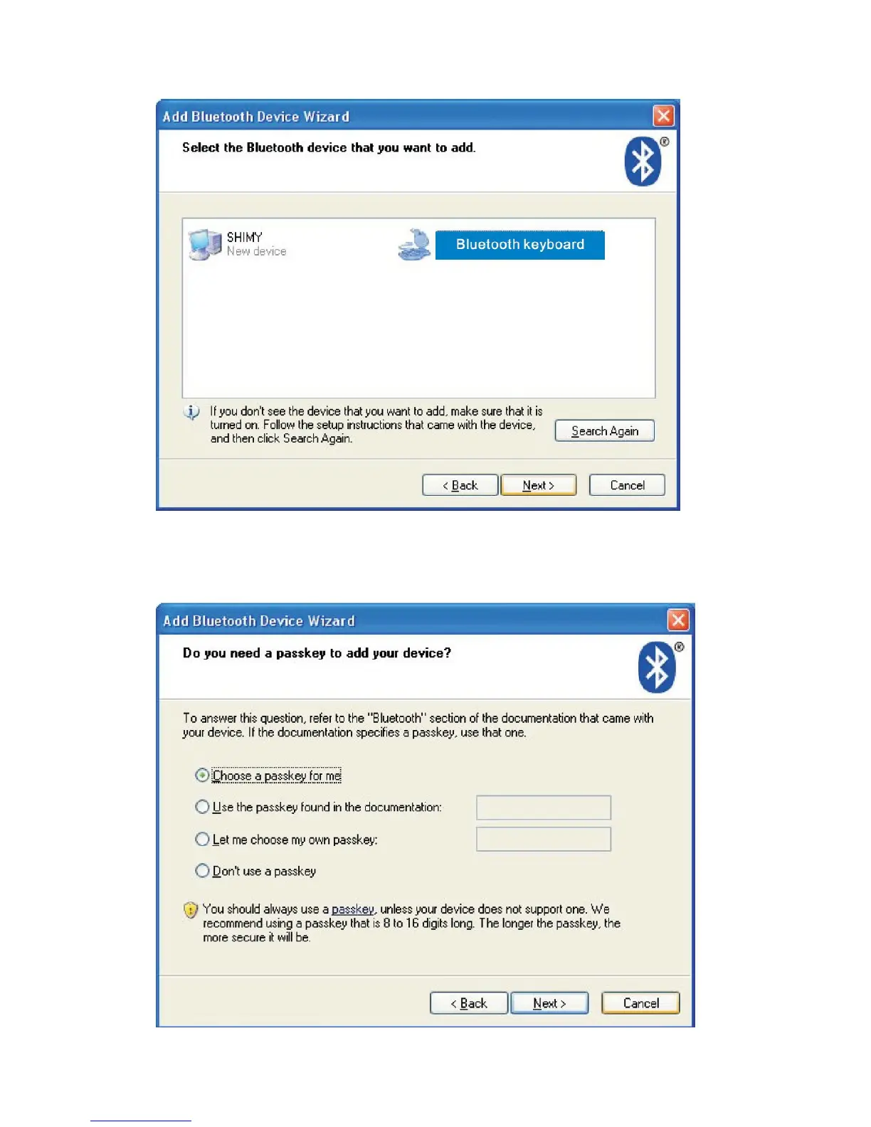 4. When the system finds the keyboard, select Bluetooth Keyboard