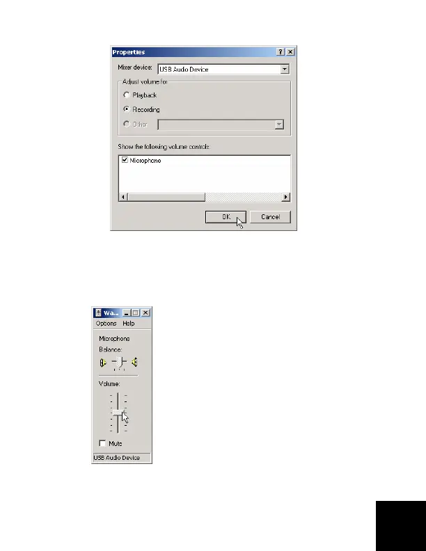 D. Zwiększaj głośność mikrofonu, aż lampka