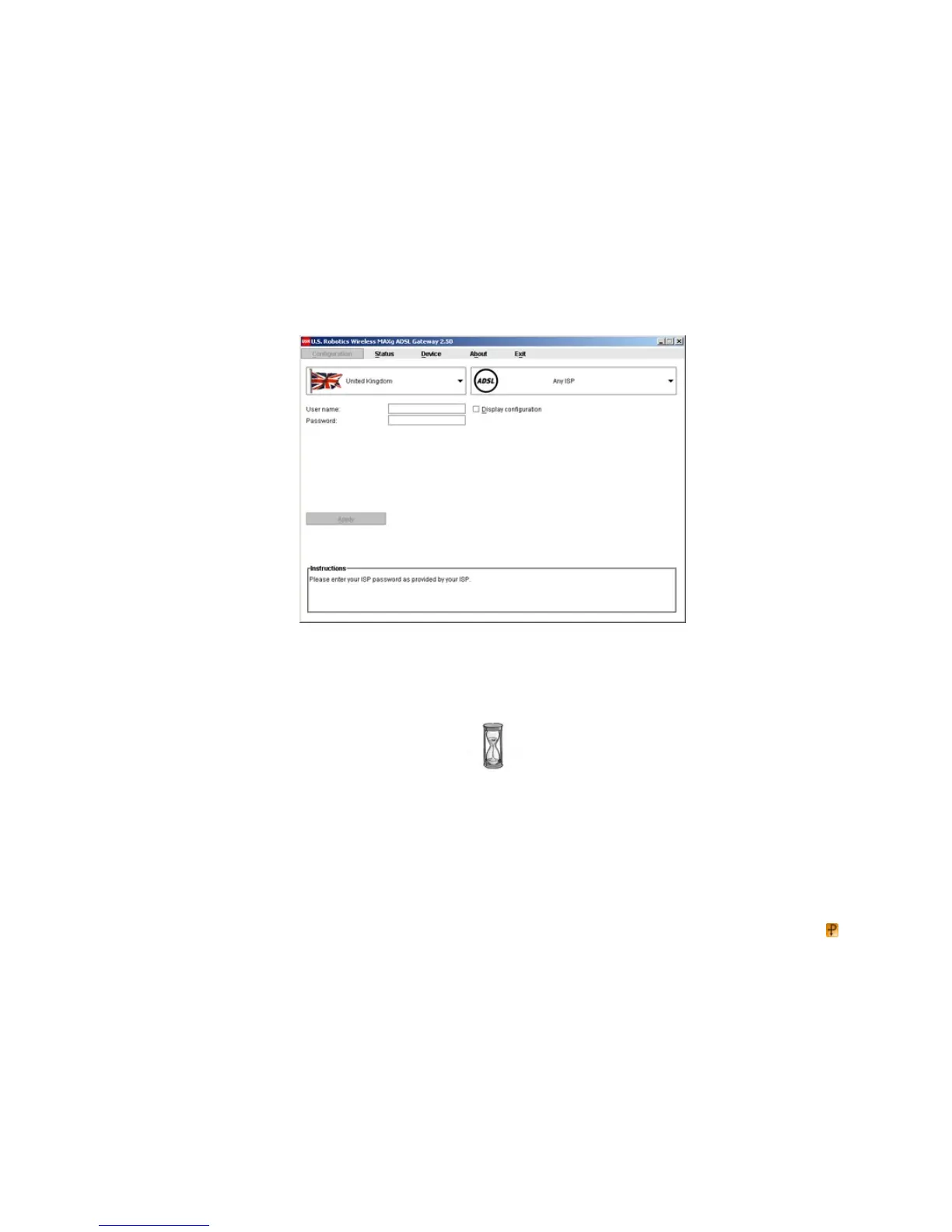 You may need to enter your ISP- supplied user name and password after making your selections. Click Apply to continue.