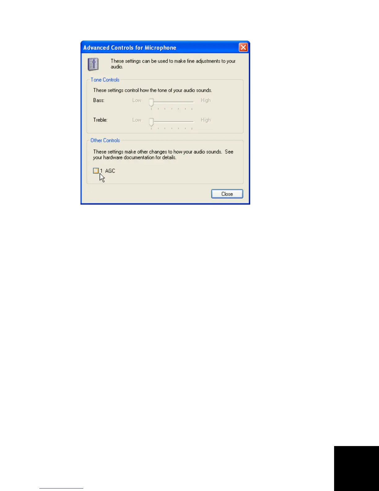 H. Ensure that AGC (or MIC Boost)is off and click Close.