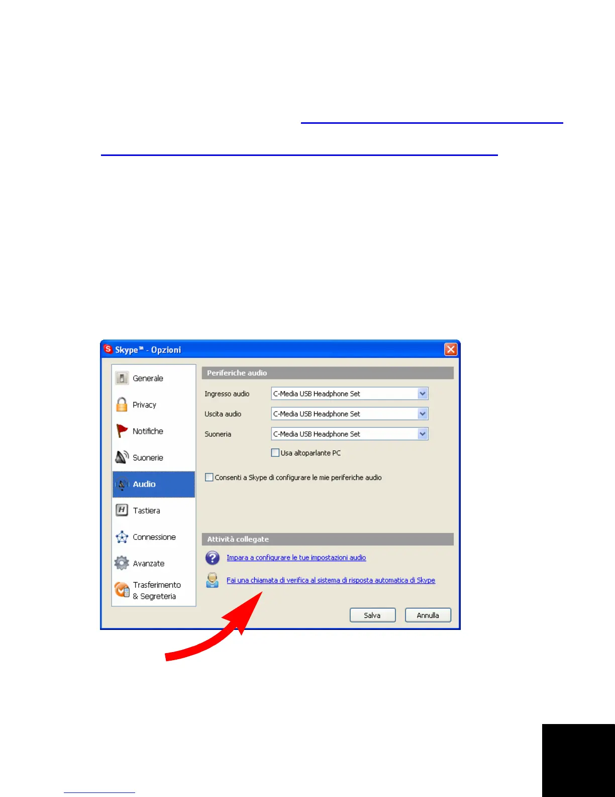 verifica al sistema di risposta automatica di Skype