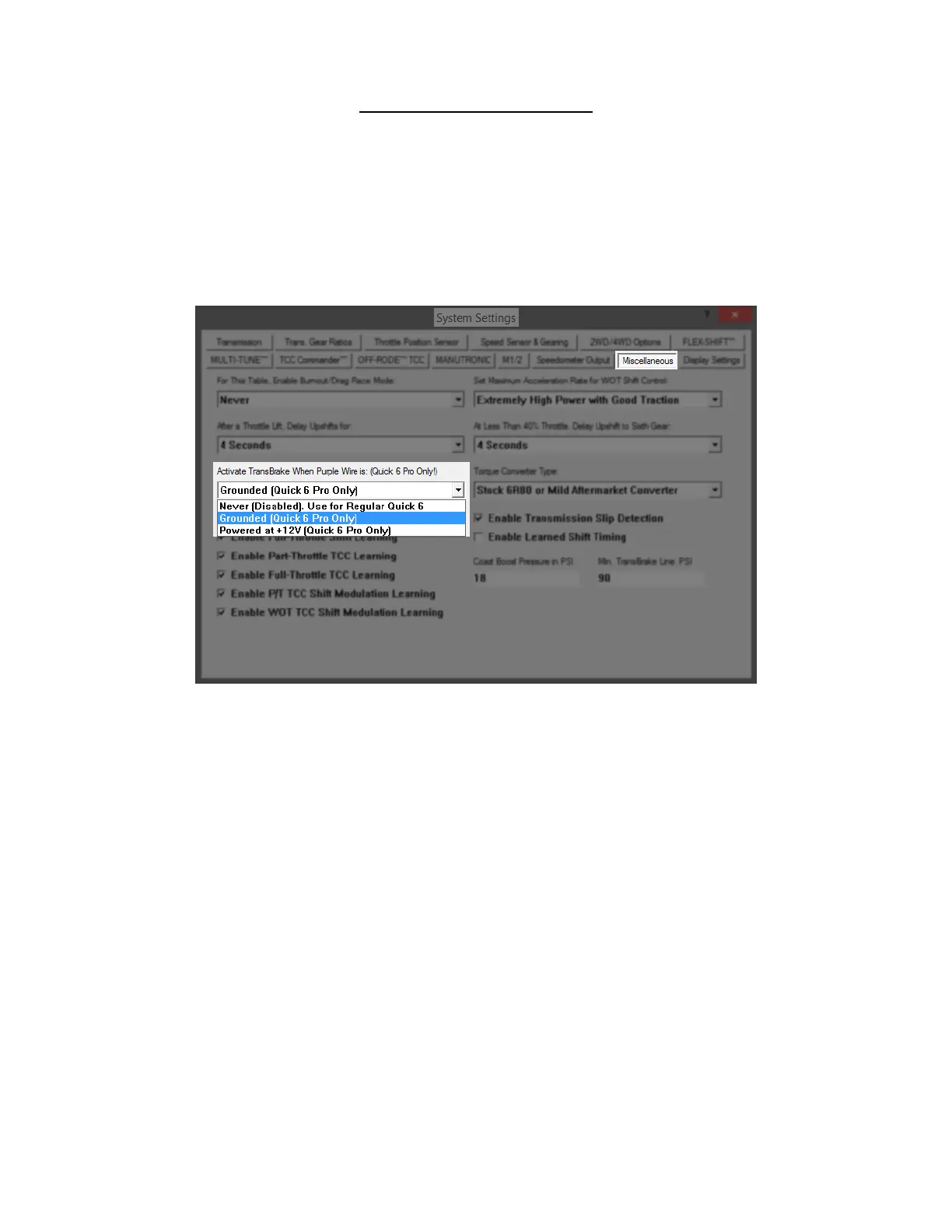 The TransBrake setting under the miscellaneous tab