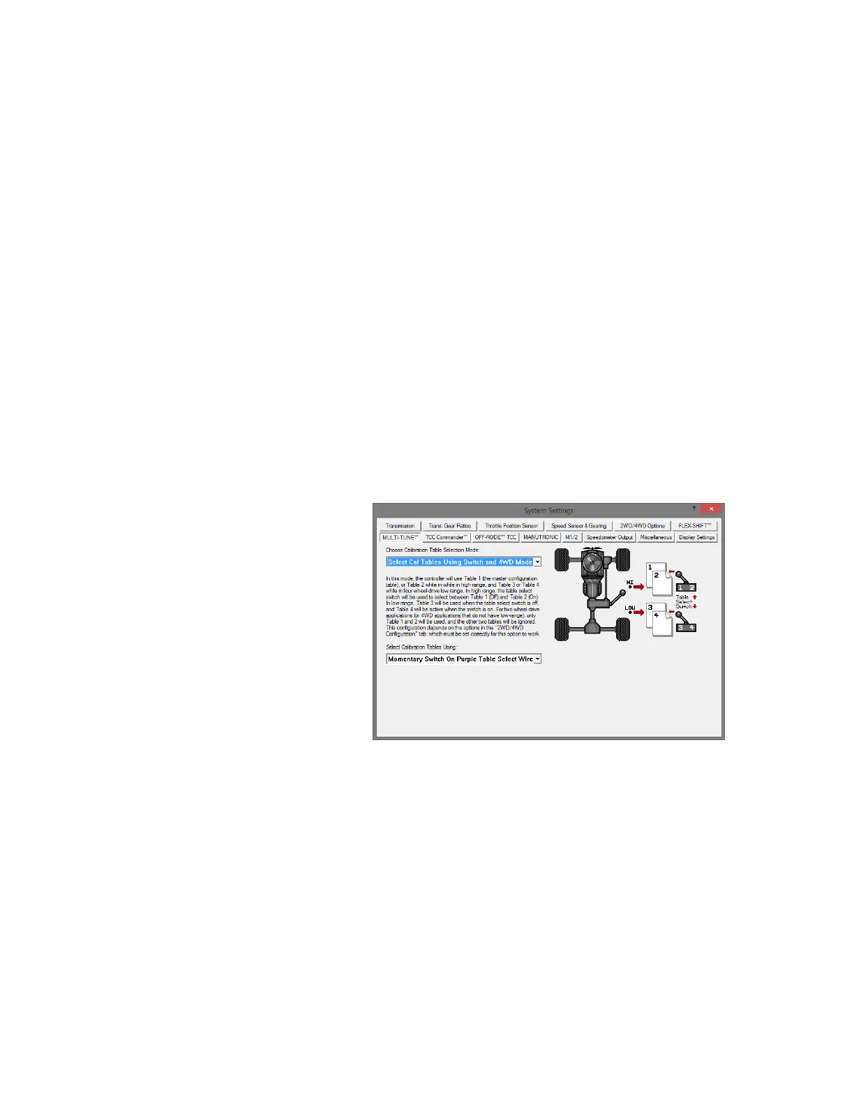 Tables Using Switch and 4WD Mode” chooses tables 1 or 2 in 2WD mode and