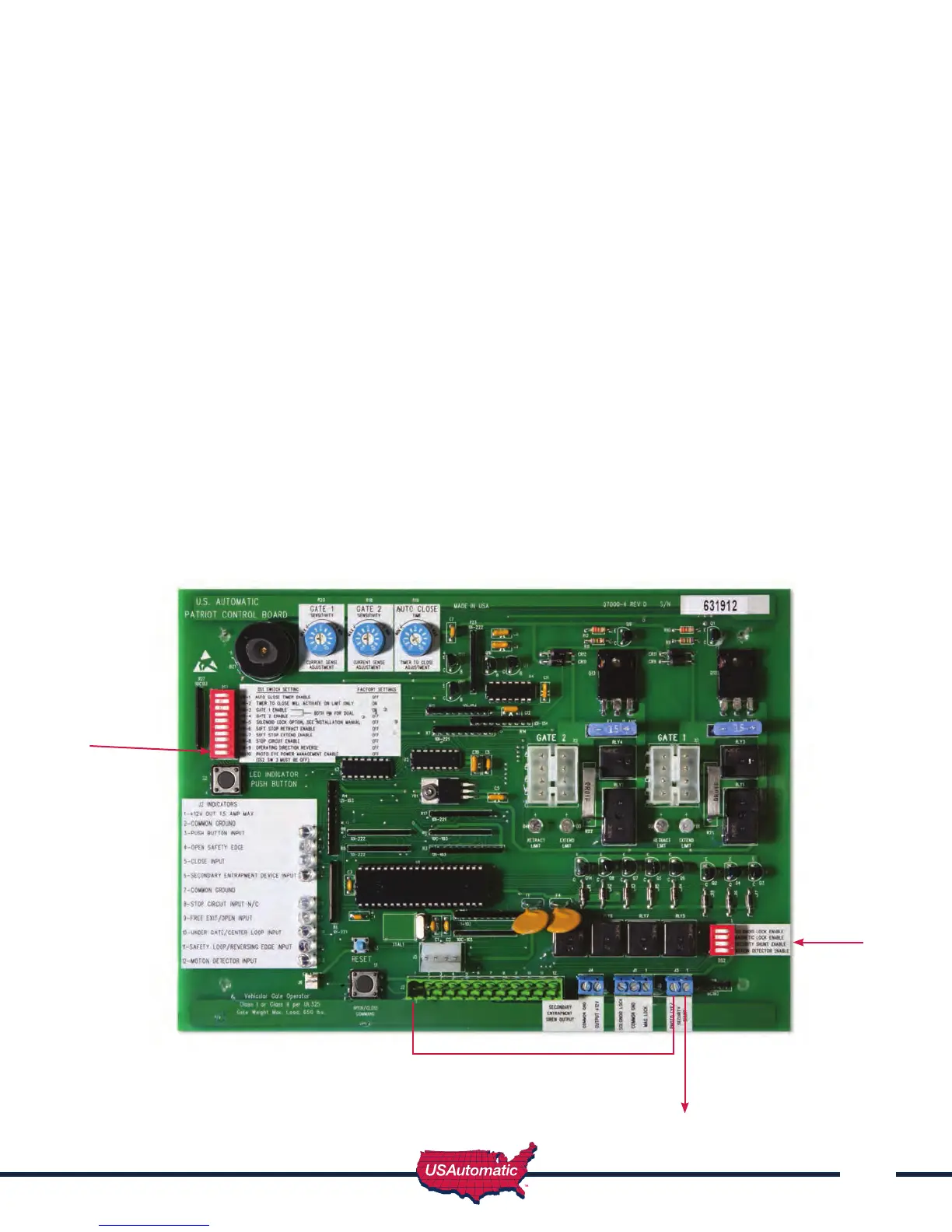 1. Connect jumper wire from J2 pin 1 to the left “Photo Eye / Security Shunt” terminal