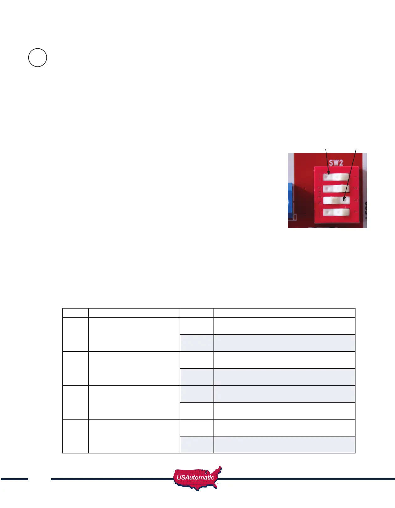 IMPORTANT: SW2 switch 4 is not a speed value switch. This switch must be set depending on