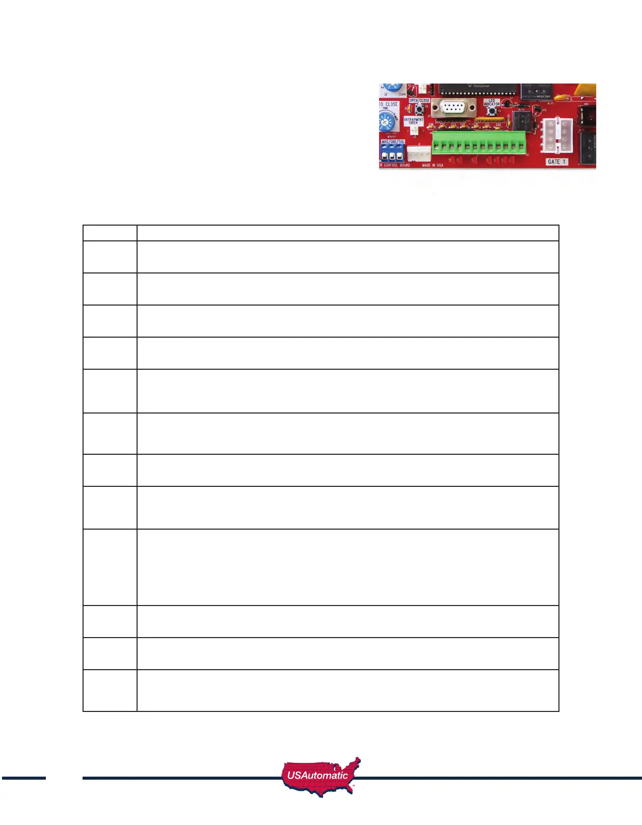 Only present when SW1 switch 10 is ON and gate is moving or SW1 switch 3 and 4 are OFF and SW1 switch 10 is