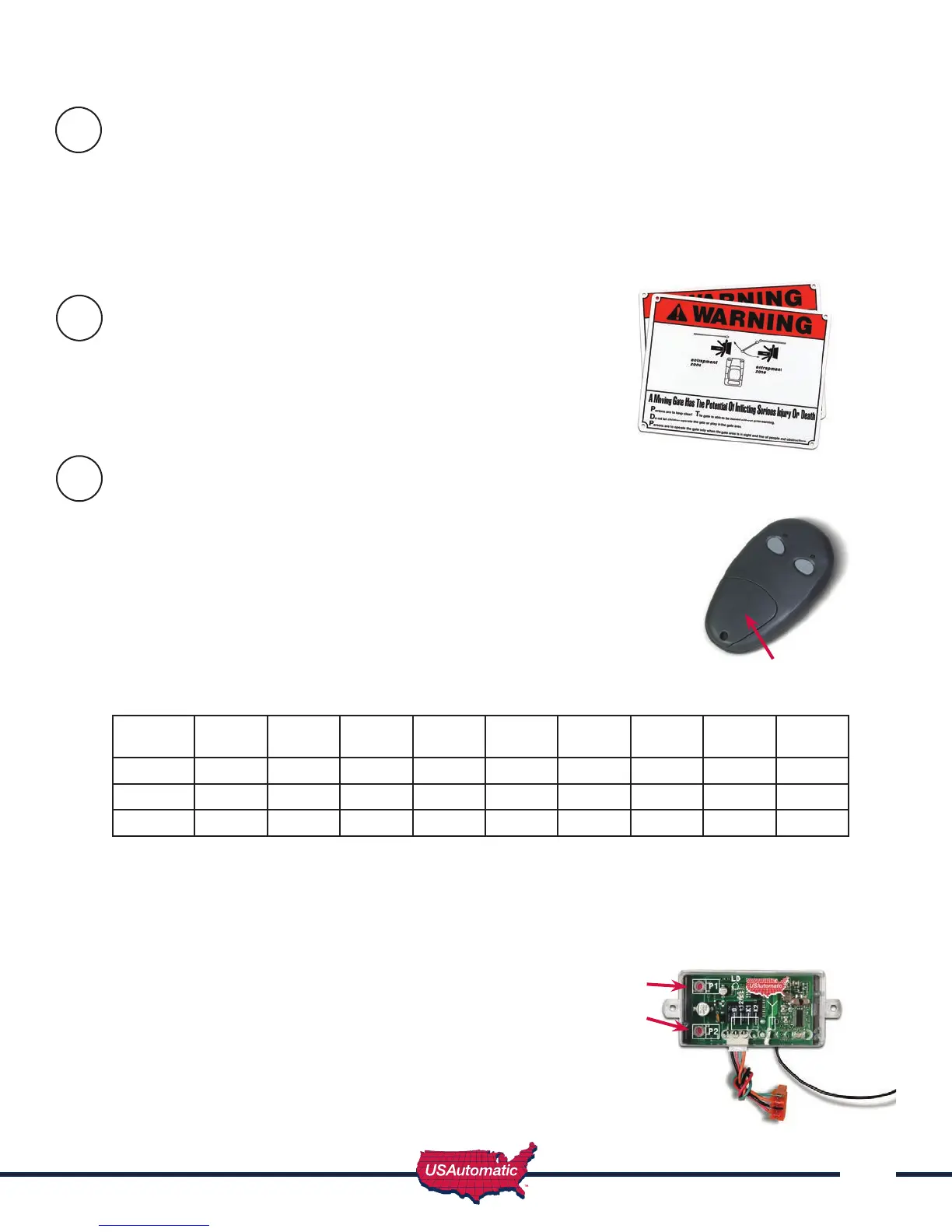 Transmitter Left Button to Receiver Programming: (standard Open/Stop/Close function)