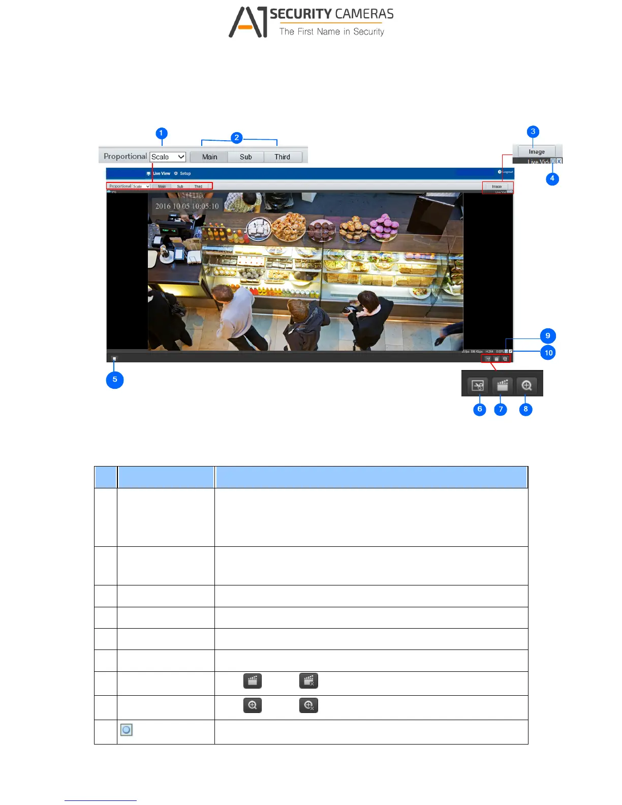 5 Play/Stop Play or stop live video.