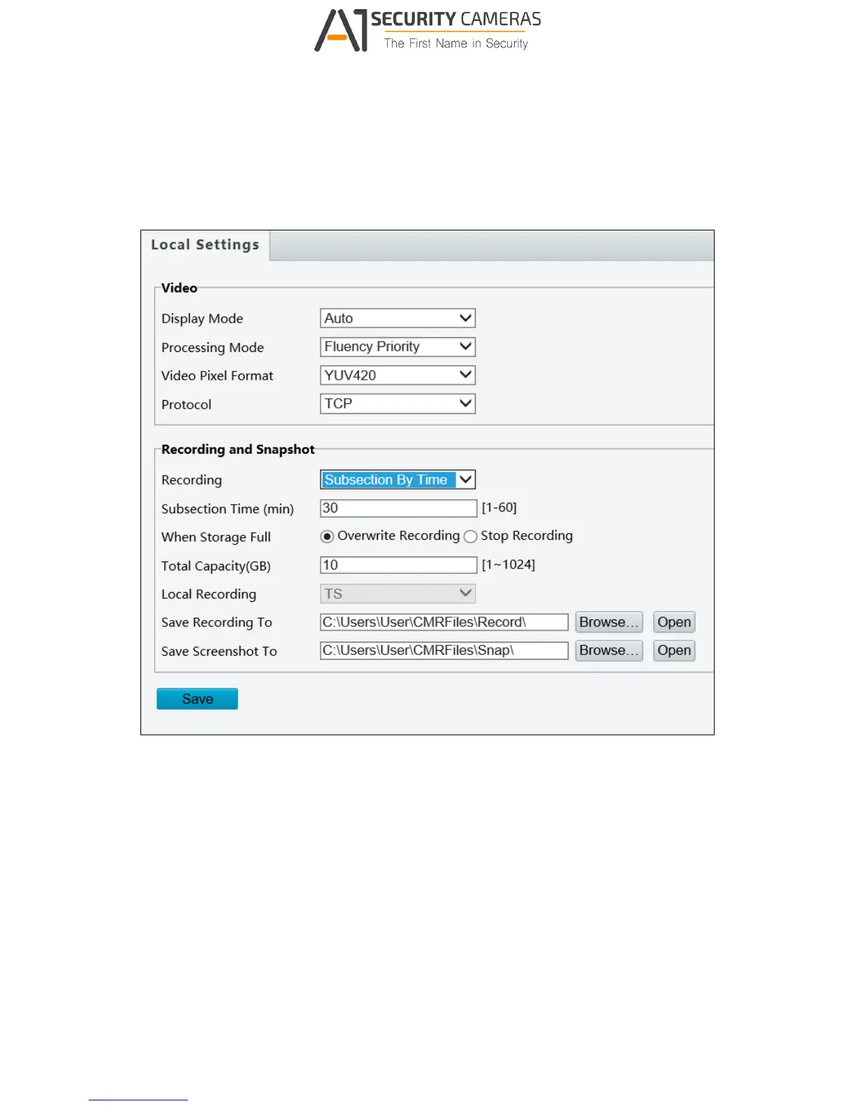 Video Pixel Format: Select the video format for images at your local computer. It is