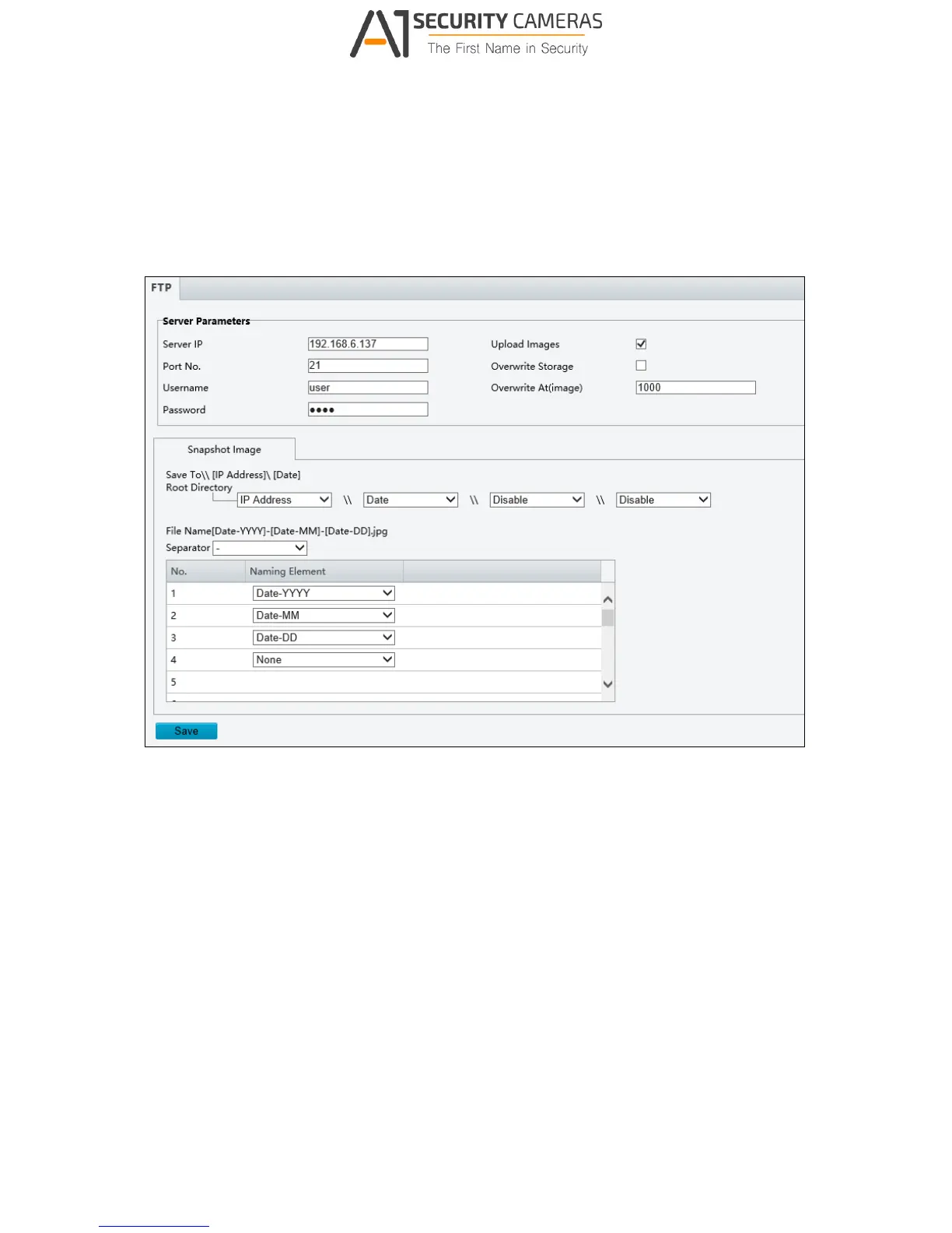 After the configuration of FTP, you will be able to upload snapshots from the camera to the