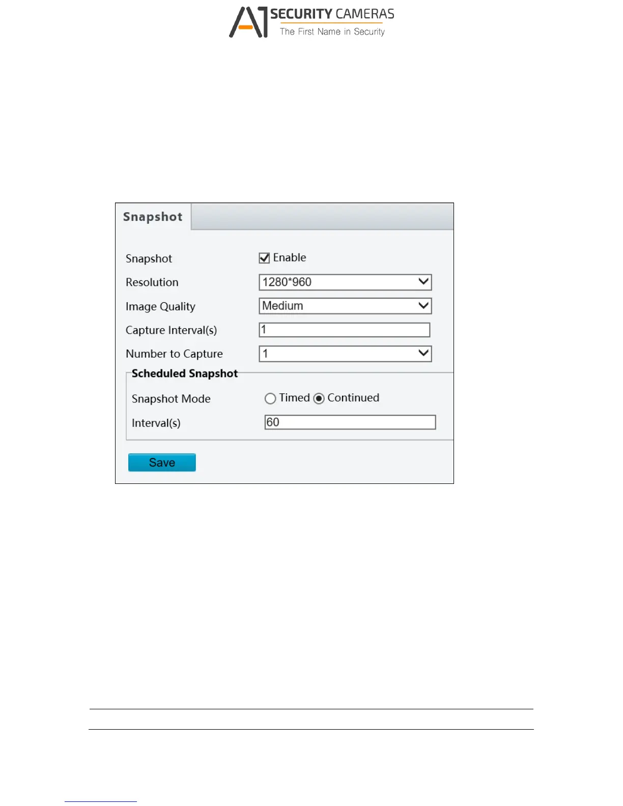 Using the Snapshot function, when an alarm is triggered, the camera will automatically