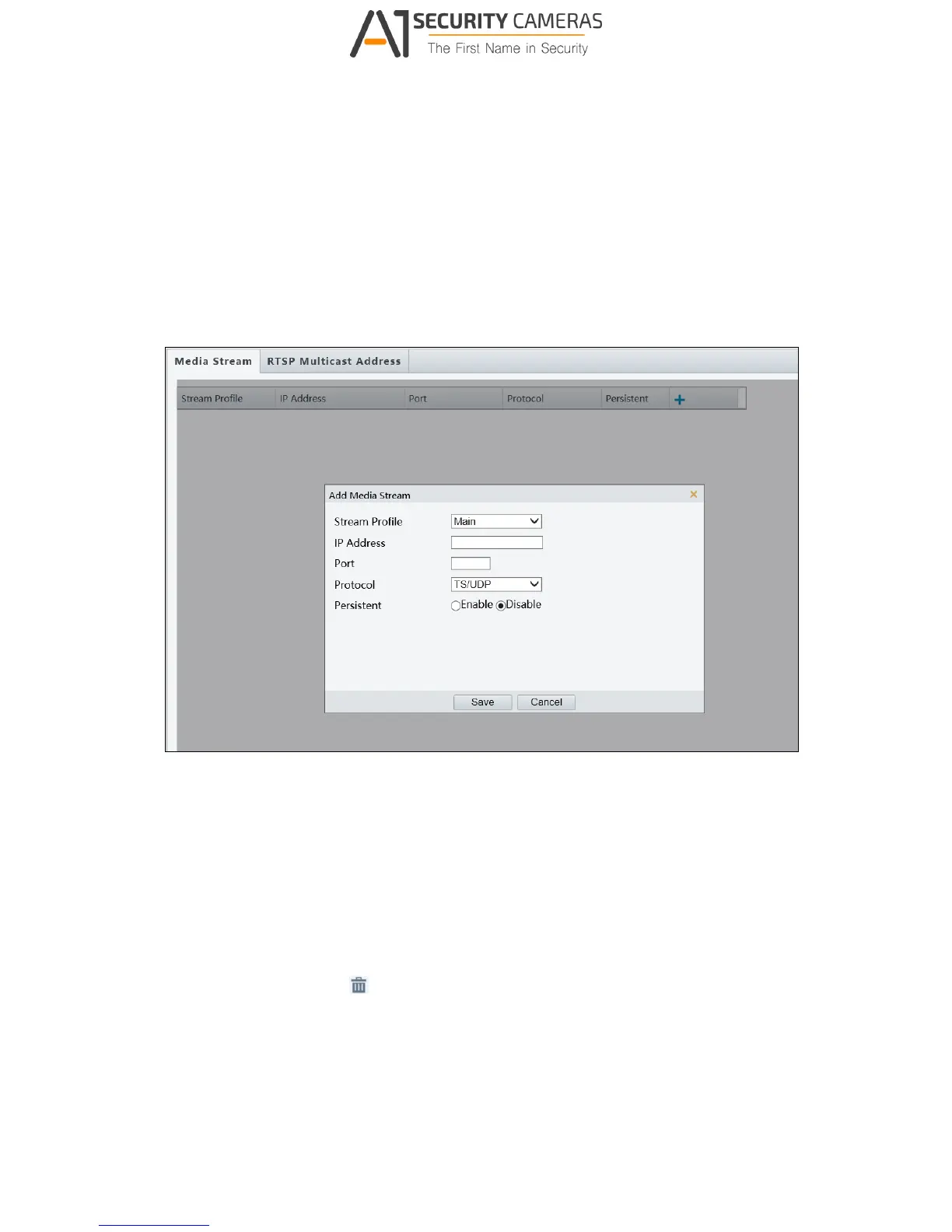By configuring media stream, you can set the camera to transmit code streams by UDP or