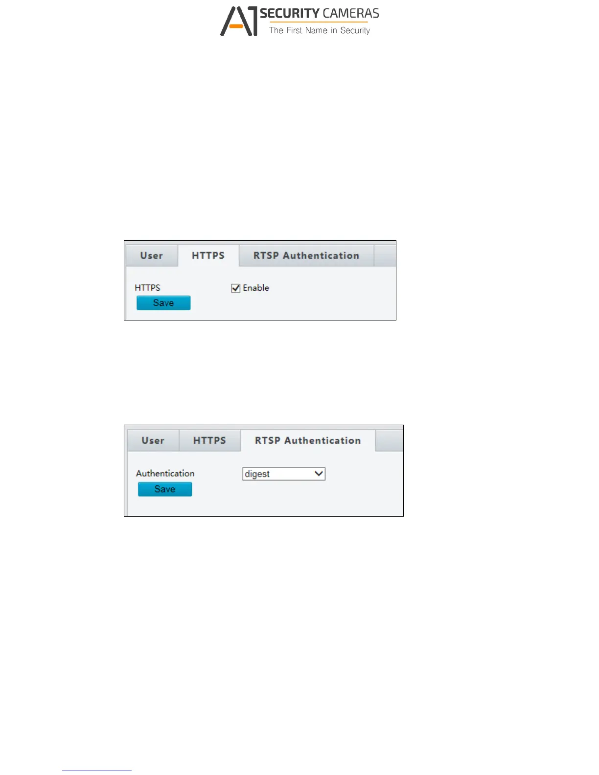 There are four types of network security settings: HTTPS, RTSP Authentication, ARP