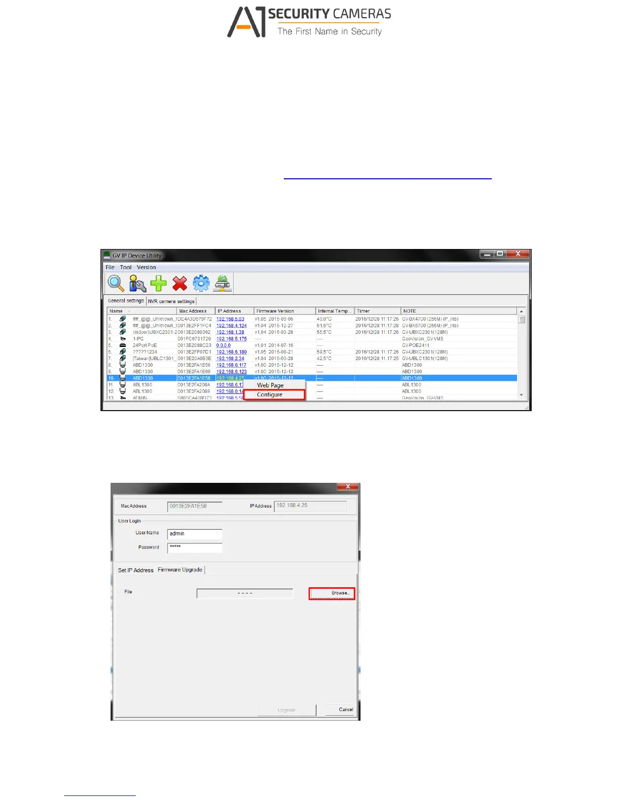 used to upgrade firmware must be under the same network of the camera.