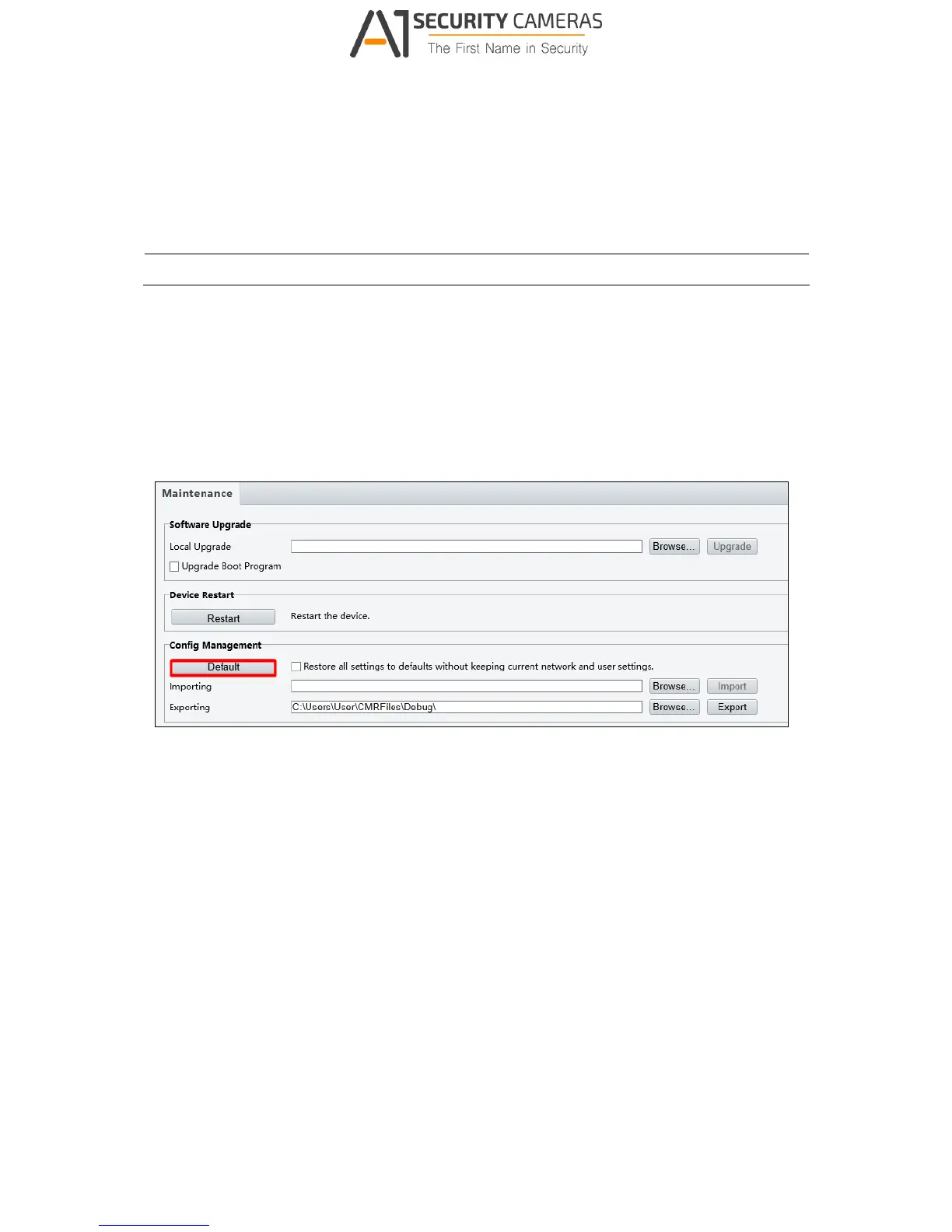 3. Under the Config Management section, click the Default button.