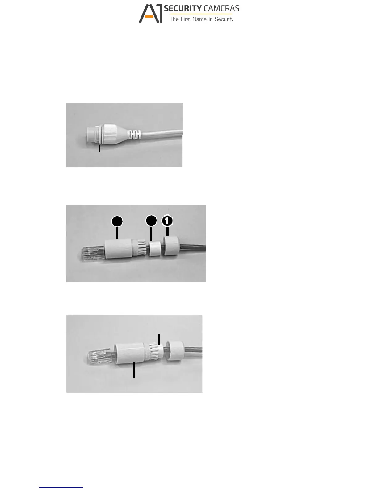 2. Insert the waterproof components through the Ethernet cable as shown below.