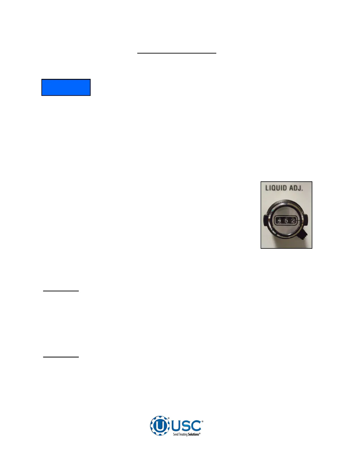 If the seed treater is equipped with a flow meter, refer to the Flow