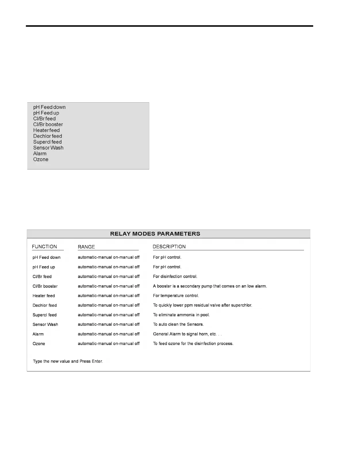 For each option you select from the Relay Modes Menu the screen will display the previous value selected