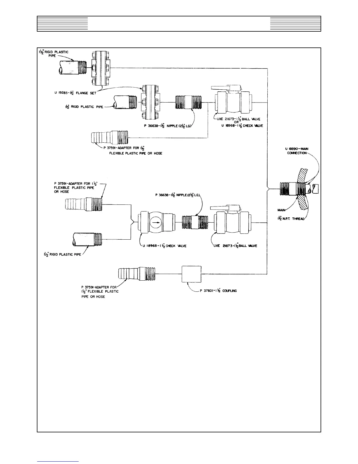 USE RIGID PIPE BETWEEN DISCHARGE AND MAIN CONNECTIONS WHEN PUMPING HAZARDOUS