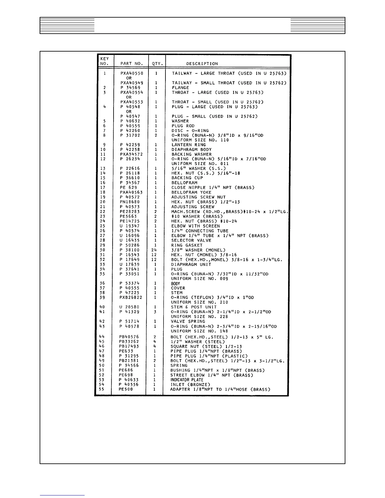 2" INJECTOR - PARTS LIST