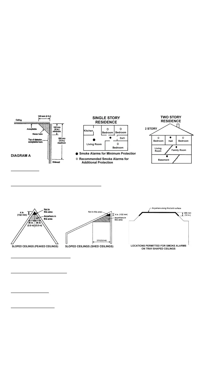 of the smoke alarm a minimum of 4" (10cm) and a maximum of 12" (30.5cm) below the ceiling/