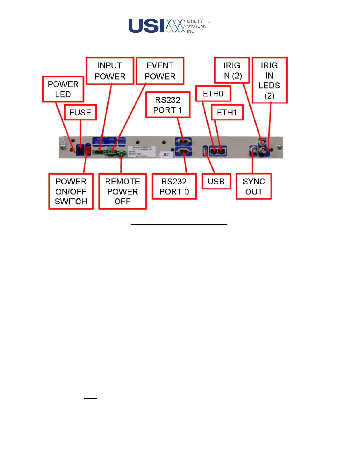 The rear panel of this module has the following features: