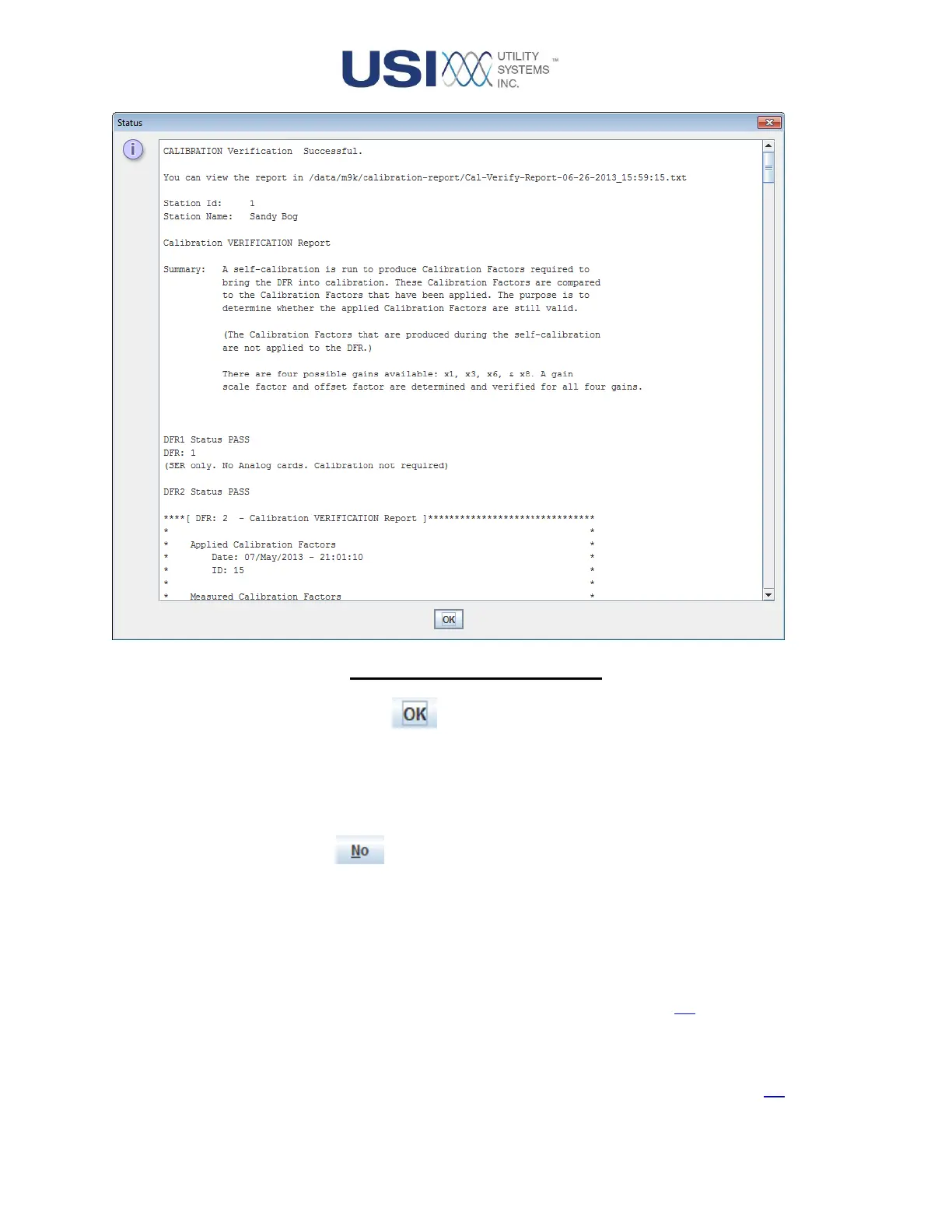 Selecting the No button closes the Calibration Confirmation window
