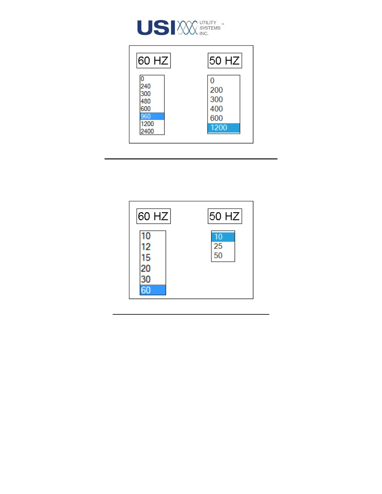 Section 3.1.4). The list displayed is determined by the Line Frequency selection.