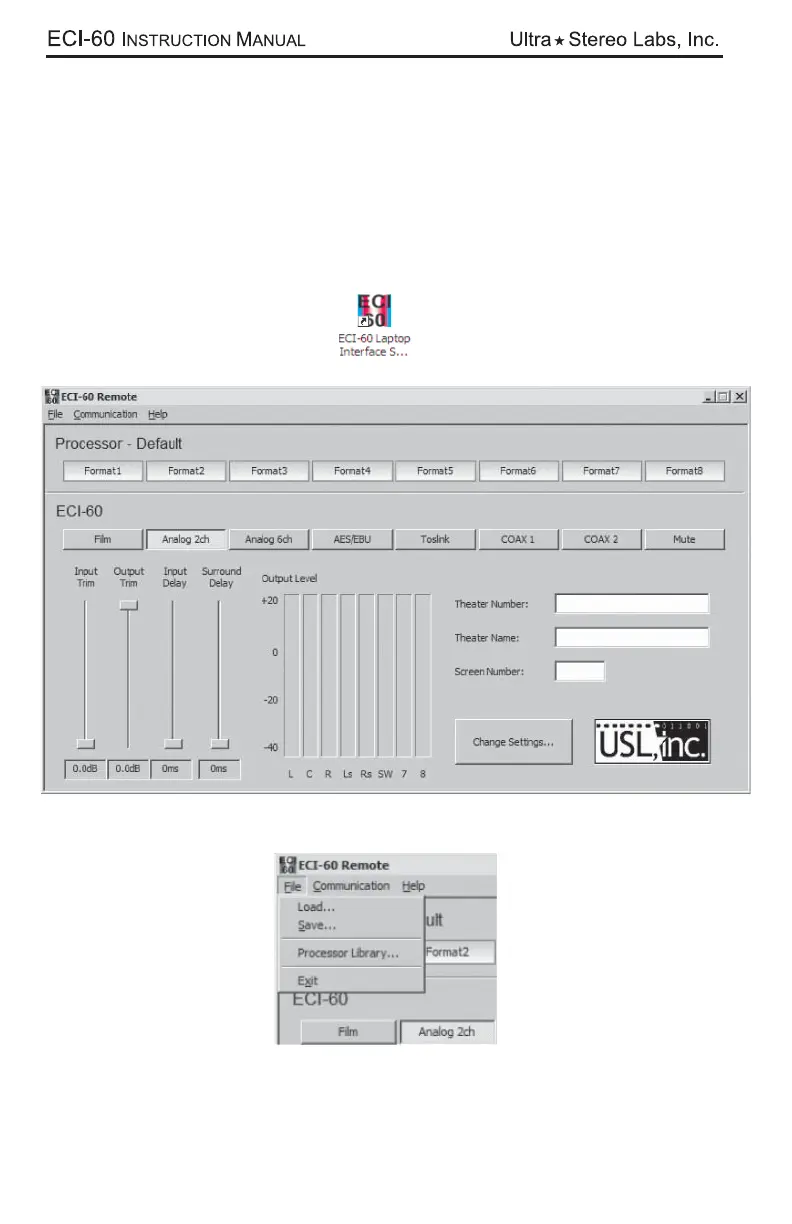 Double click the ECI-60 icon on your desktop and the opening screen appears.