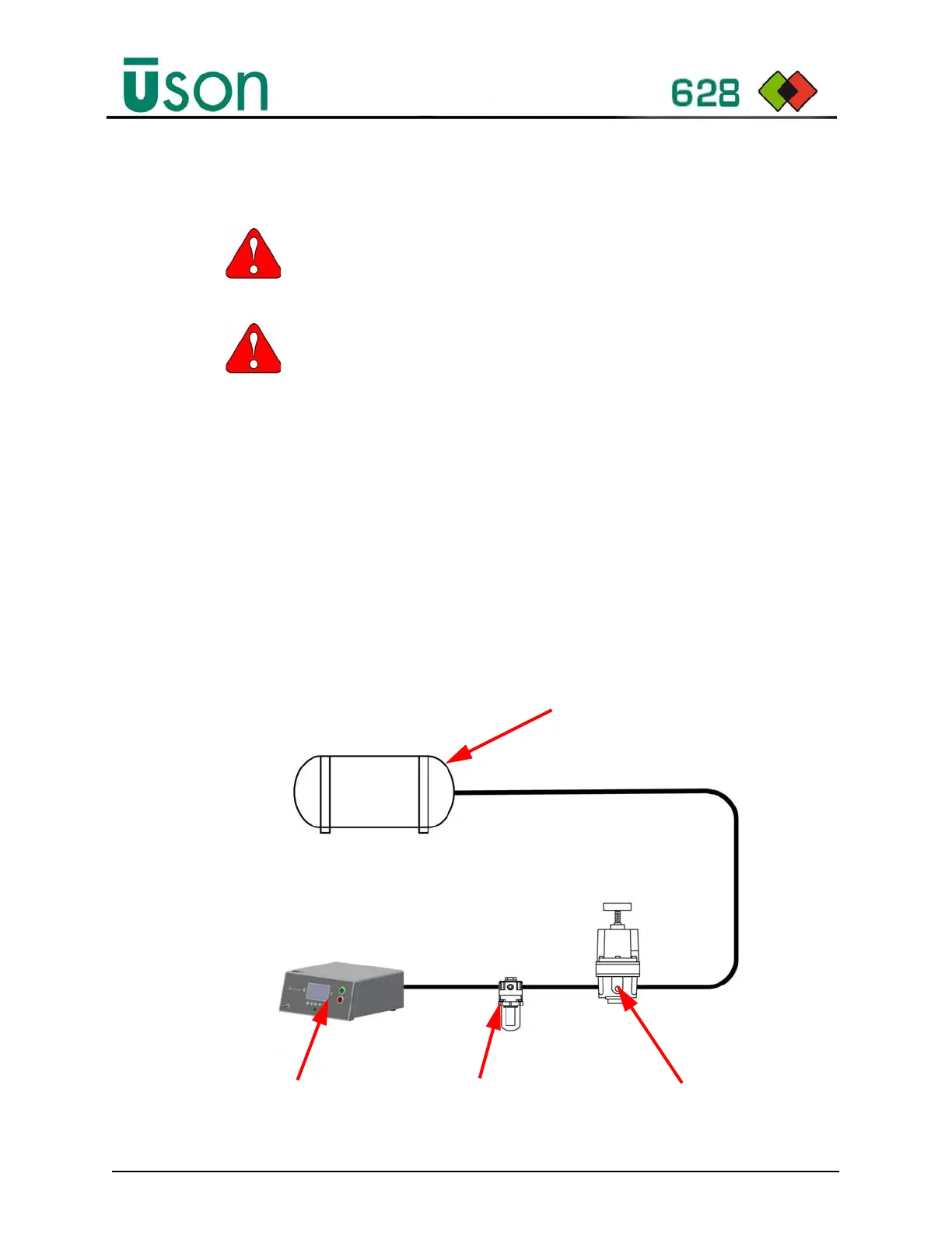 component to be tested, and the air supply line to the Uson 628, are free from