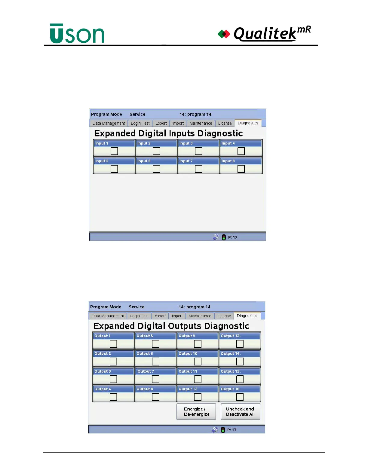 The Expanded Digital Outputs screen is used to test expanded digital outputs
