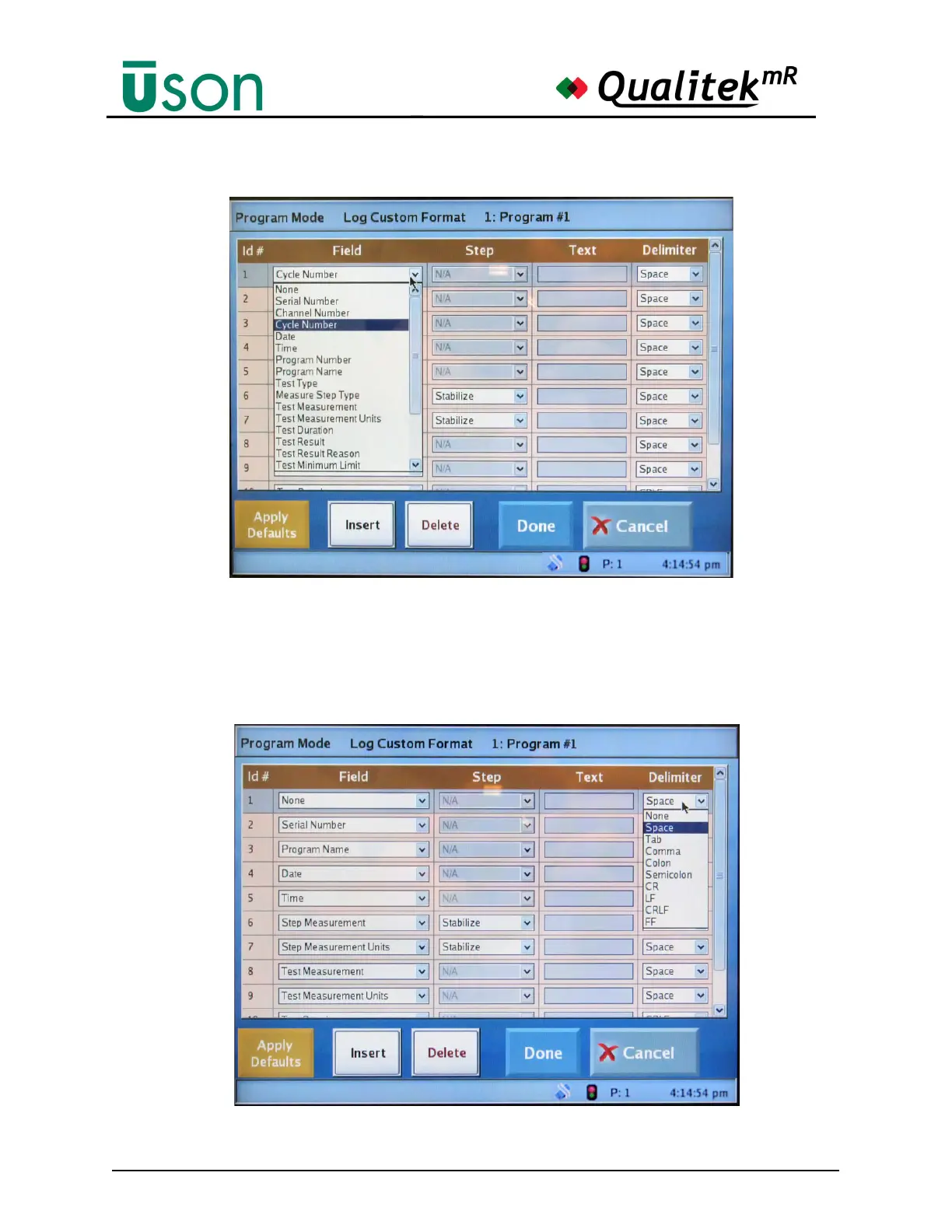 Note that the delimiter used between fields may be selected from the Delimiter