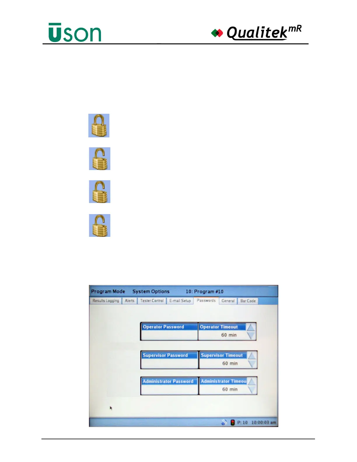 symbol is shown as locked, a logon is required to access Program Mode features.