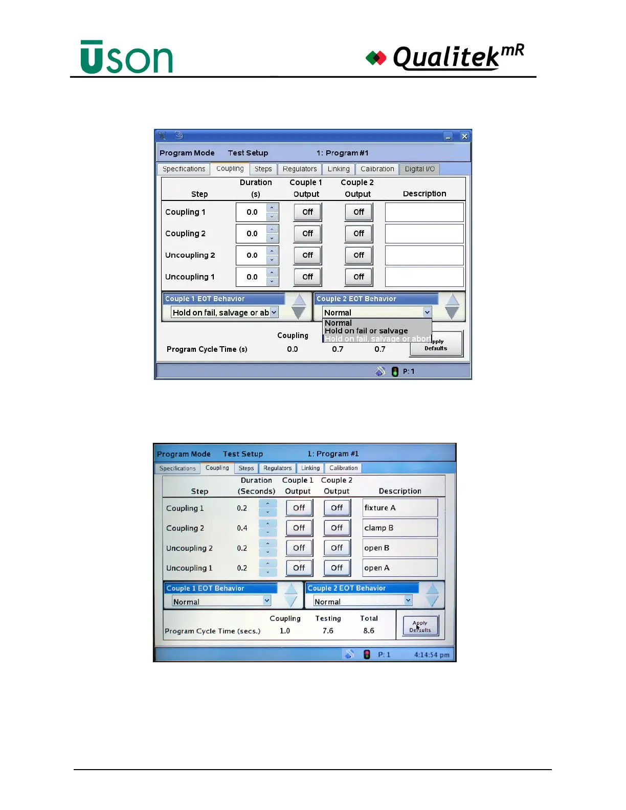 Use the buttons in the Couple 1 and Couple 2 Output columns as needed to use the