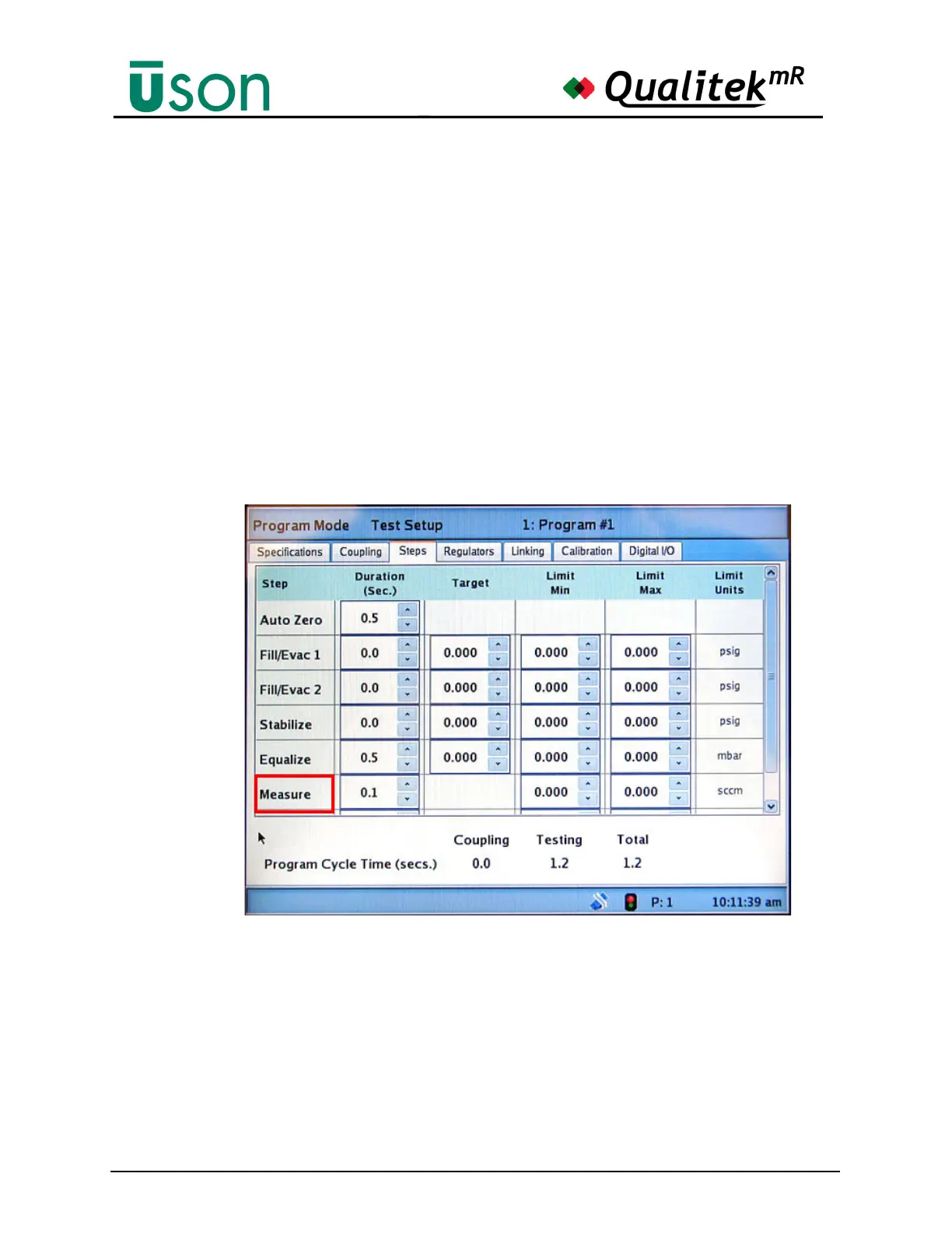 displayed after clicking the Measure step label on the Program Mode, Test Setup