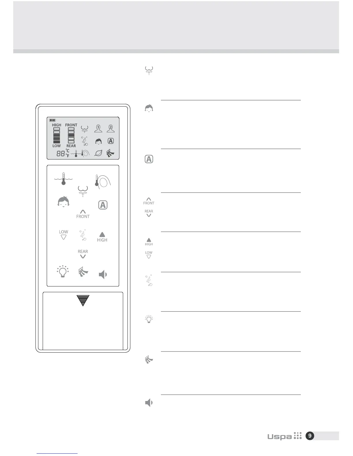 - Nozzle position can be adjusted by pressing FRONT or REAR