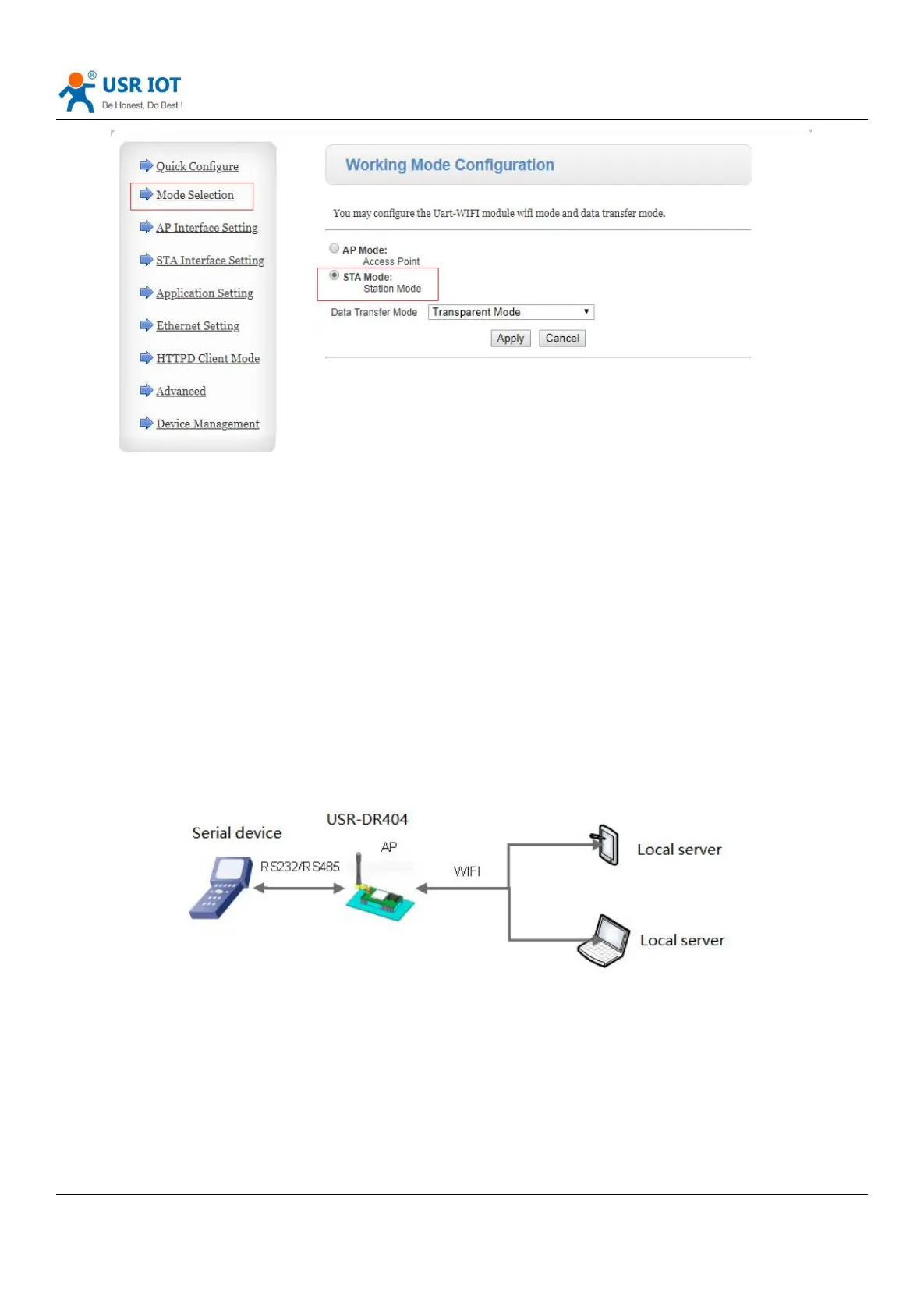 WIFI can do as a AP, other serial port device and PC as a STA can connect the WIFI, also it can connected to user