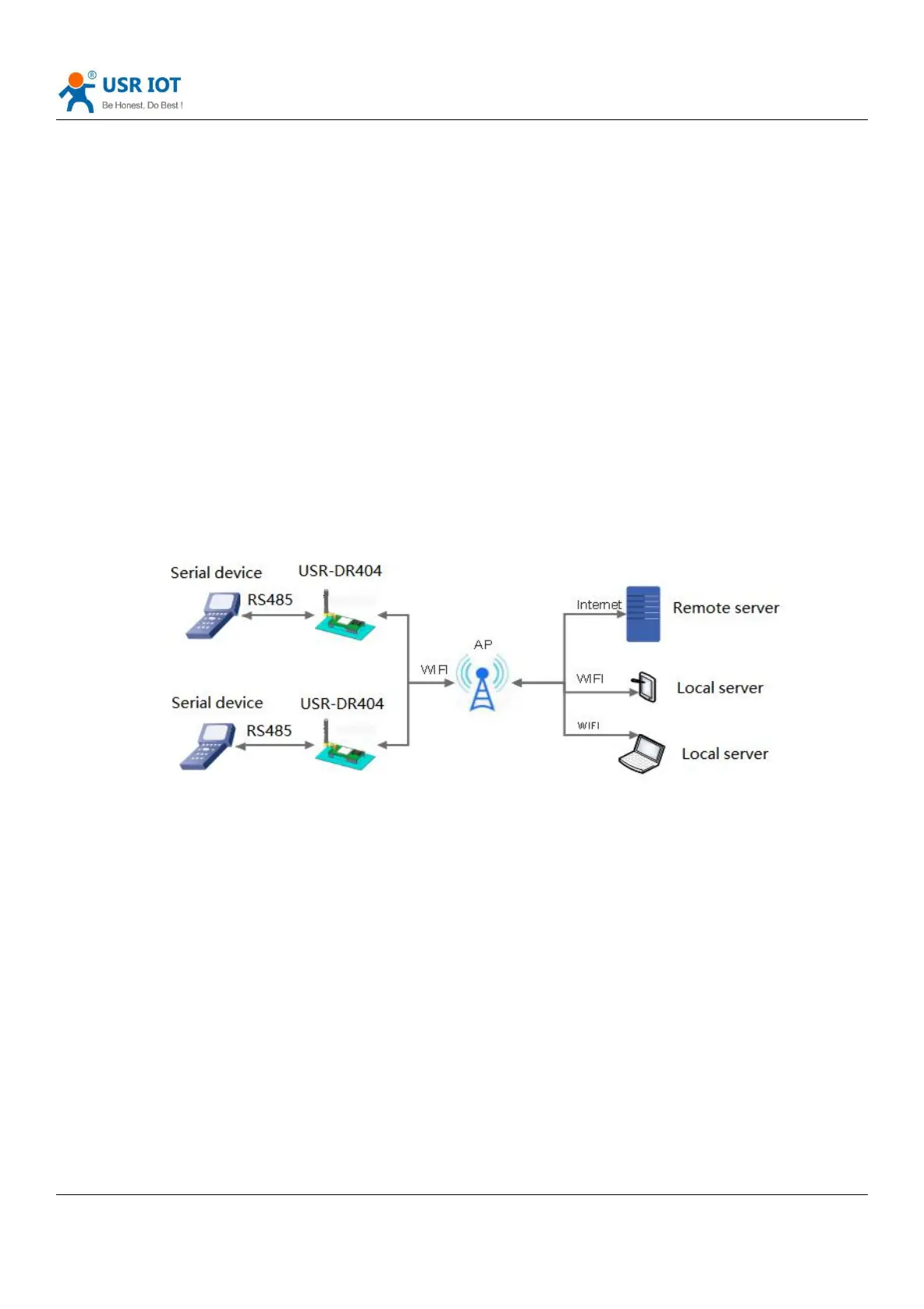 USR-DR404 do as STA and connect to other APs to form a wireless network, all STA take the AP as wireless networking