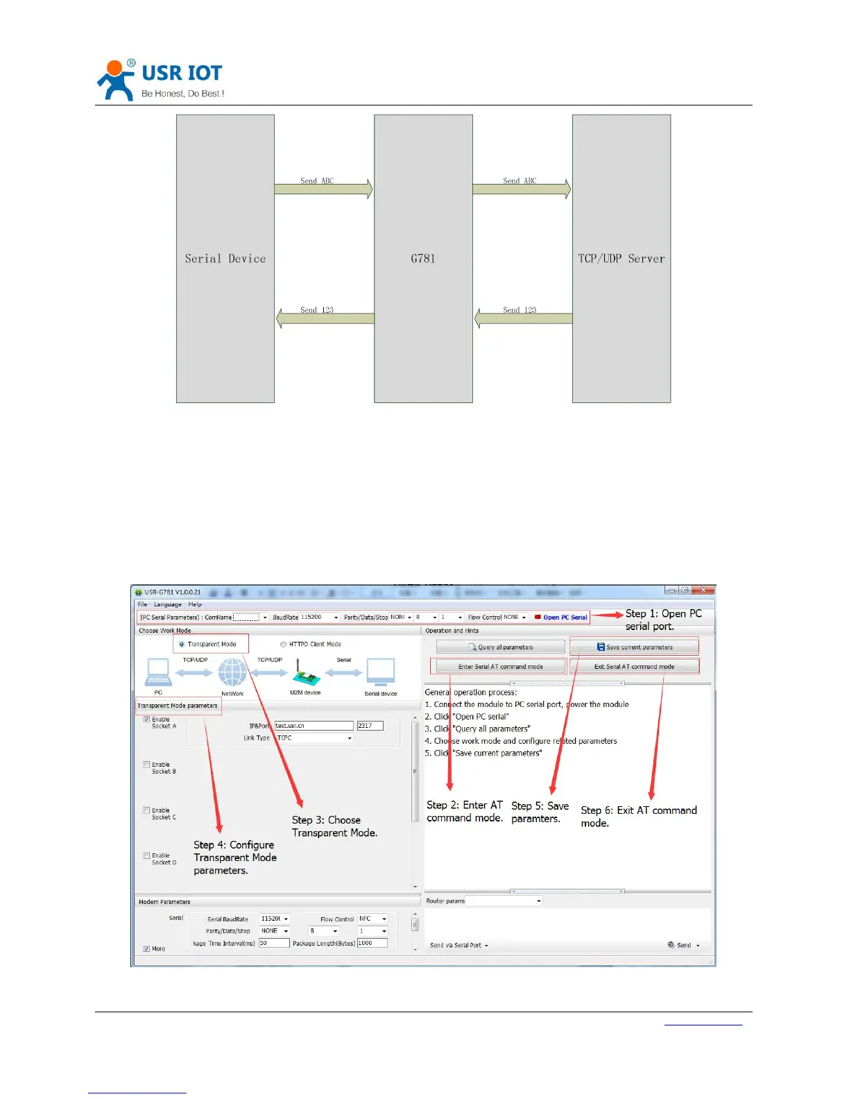 User can configure the Transparent Mode by setup software as follow: