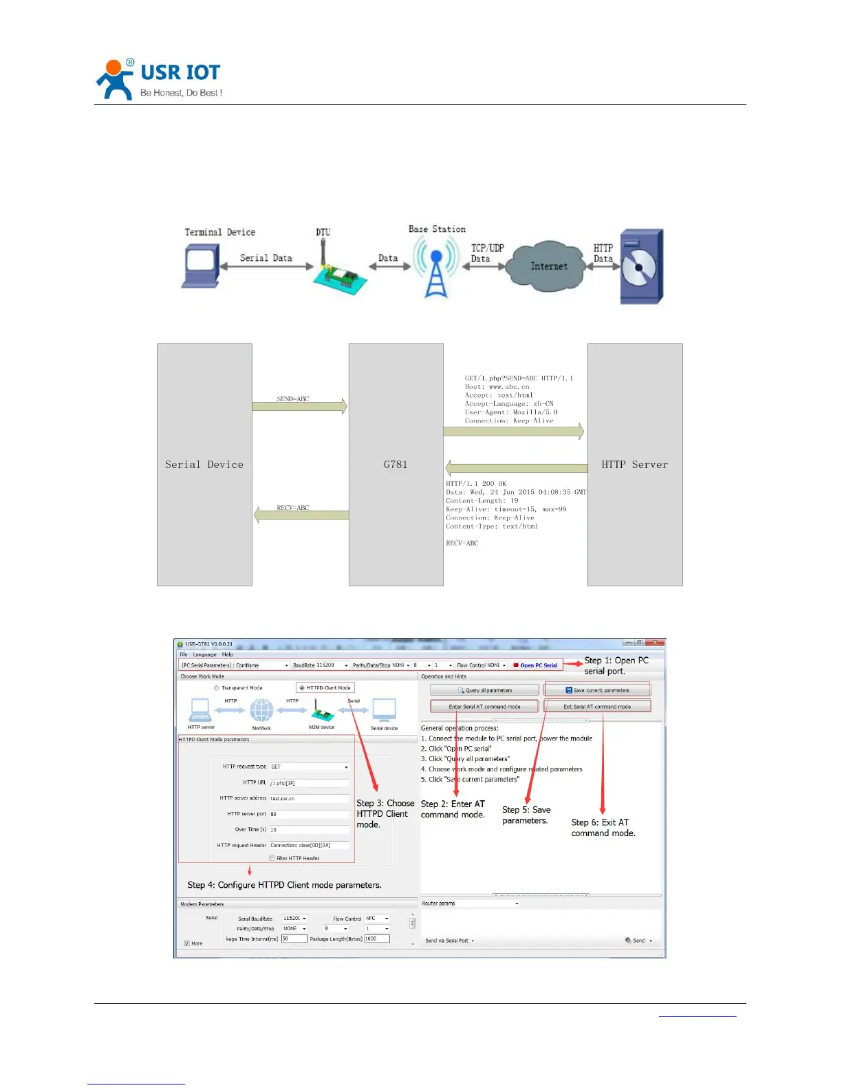 HTTPD Client Mode: DTU will add the HTTP Header for every data from serial and transfer HTTP format data to